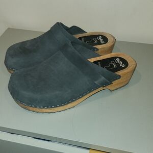 Adorable and timeless classic style clogs made in Sweden, genuine suede leather upper and wooden heel and footbed.