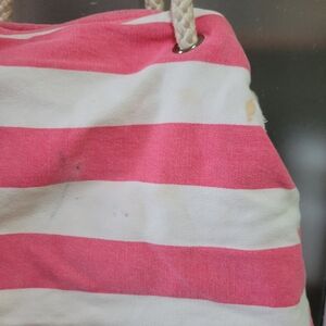 Stylish and spacious, this Victoria's Secret beach bag features vibrant pink and white stripes. Perfect for a day at the beach or a casual outing.