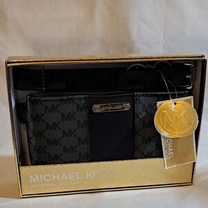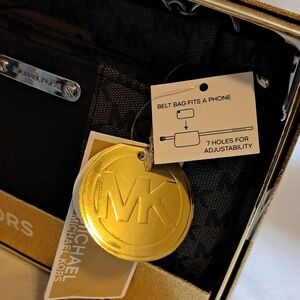 Stylish black belt bag by Michael Kors. Features adjustable strap. Perfect for on-the-go convenience.