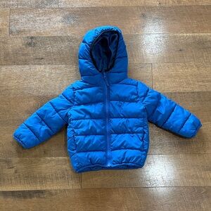 American Eagle Blue Jean Jacket with Distressed Details and Contrast Stitching