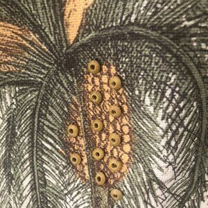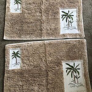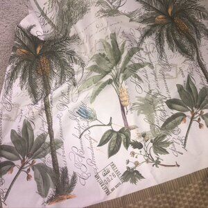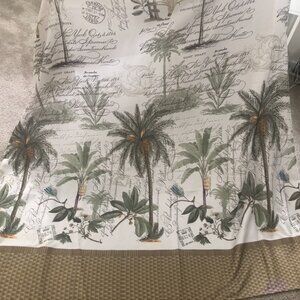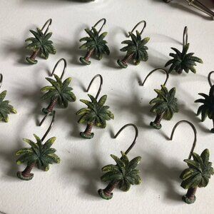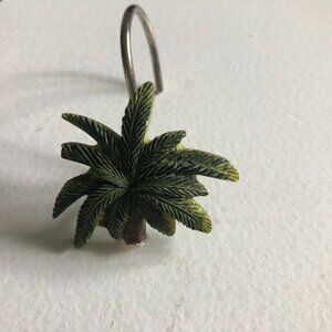 Includes matching palm tree curtain rings; the trunk of one palm tree is broken off but ring still works.