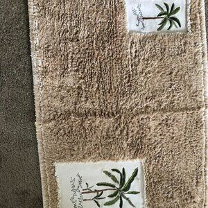 Palm Tree Shower Curtain, curtain rings, and rugs