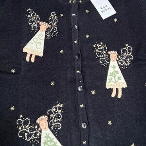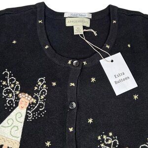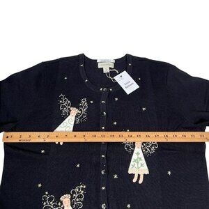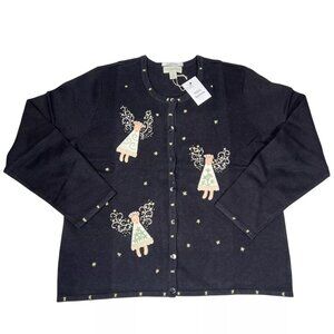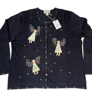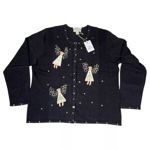 Limited Edition Appleseed's Womens Black Christmas Angels Cardigan Sweater Sz XL