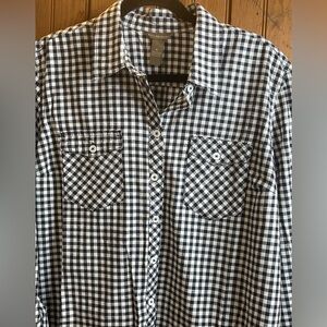 Bit and Bridle Button Up Womens Shirt Western Black and White Gingham SZ XL