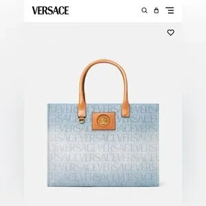 Elevate your style with this Versace women's bag. Featuring a chic blue design with tan accents, this bag is perfect for any occasion. Experience luxury and elegance with Versace.