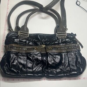 This is a pre-owned Louis Vuitton Keepall Bandouliere 55 duffel bag. It features the classic LV monogram canvas with leather trim and handles. The bag includes a detachable shoulder strap. The exterior shows signs of wear, including scuffing on the leather trim and some fading of the canvas. The hardware exhibits tarnishing. The zipper functions smoothly. The interior is clean with minimal signs of use.