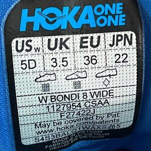Hoka Bondi 8 Sneakers. Women’s Size 5 D. Color Coastal Sky