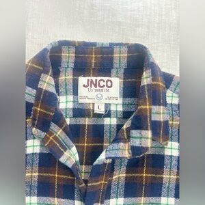 JNCO Men's Size Large 90s Button Down Casual Long Sleeve Plaid Flannel Shirt