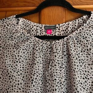 Dolman sleeves. Pit to pit 28, sleeve 19, length 25. Viscose/polyester/nylon blend. Hand wash cold and lay flat to dry, or dry clean.