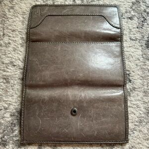 Elegant Frye Melissa Continental leather wallet in taupe. Ideal for daily use.