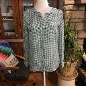 Crown and Ivy size 1 X pink and white gauzy feeling gingham style v/neck blouse. Pleated right under v/neck textured. Short balloon sleeves with elastic at end. Really cute and feels great.