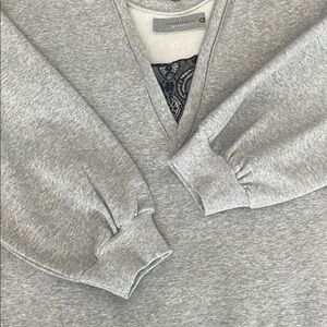 Pilcro Gray Long Sleeve Dress with Black Lace Hem
