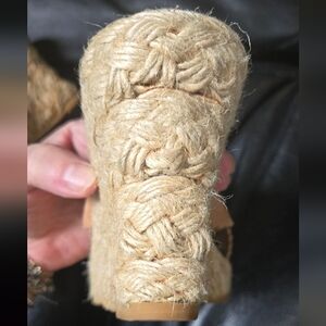 Step out in style with these tan Michael Kors wedge leather sandals. Perfect for any casual outing, these shoes offer both comfort and elegance. These have a rope decorated wedge and soft rubber sole with a soft leather insole. These are gently tested with a little wear on the logo area of the heel. I purchased these here on Poshmark and never wore them. There is some glue showing from manufacturing that is shown in the photos. The front wedge is 1" and the back heel wedge is a little under 4". Super cute shoes! Please ask questions and make an offer. I can't say yes if you don't ask!