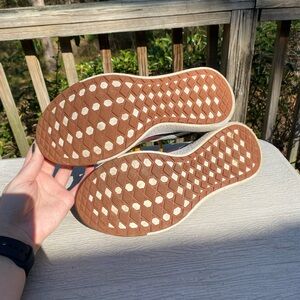 Comfy, cool, and super unique color. Smoke free, pet friendly home. The suede material is a little weathered, see photos. Women’s size 10