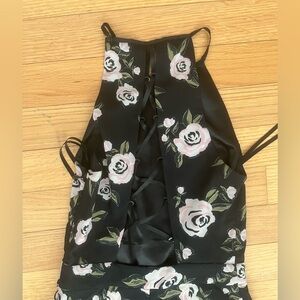 Bebe Black Floral Halter Jumpsuit w Lace Open Back Size 2