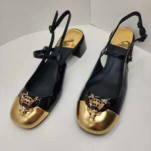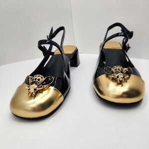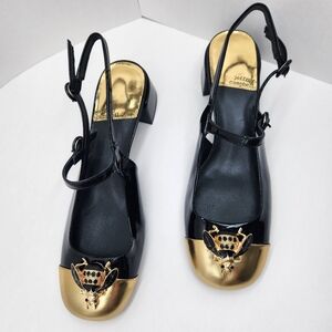 Jeffrey Campbell pumps 10 black leather gold Bee slingback Jive Mary Jane new $165 retro cap toe designer maximalism