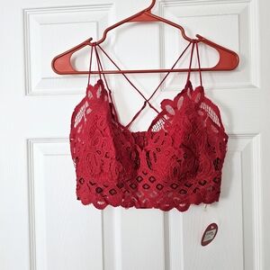 Elegant red lace bralette perfect for a stylish and comfortable fit. Ideal for any occasion.