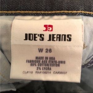 Wide leg blue jeans by Joe’s Jeans, Size 26. Tricky wash. Very minor distress around pockets. Very good condition. comfy jeans!