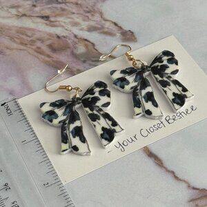 Black & white cow print bow earrings #bowearrings #animalprint #cow #cowprint