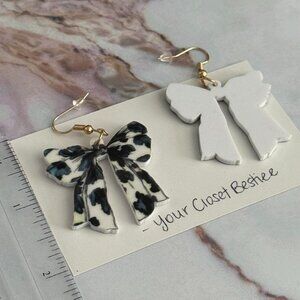 Black & white cow print bow Coquette Style Trendy Earrings