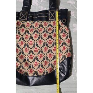 Rare Loungefly ❤ logo skull and crossbones tote. This used bag has a ton of room to carry your essentials with exterior and interior pouches.