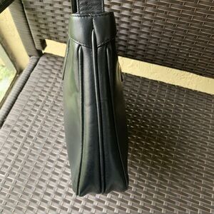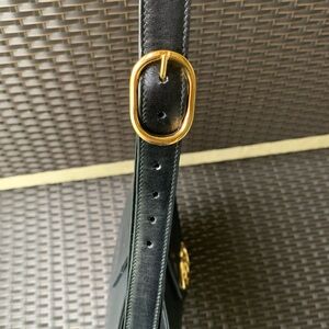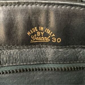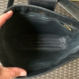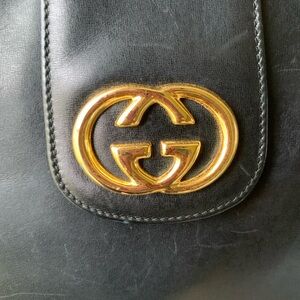 Black leather interior with pocket Gold tone hardware with fading and scratches