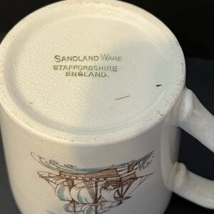 Charming mug and plate set featuring a Bermuda map design. Perfect for collectors. Possibly dating back to 1909 this Ceramic collectible Vintage Sandland Ware made in Staffordshire England Features Bermuda map featuring names of place and ships in Bermuda 1609. Great shape for being approximately over 100 years old. Small stain and line under glazing on tray and crazing on cup. Tray measures approximately 6”x4”x1” and cup measures approximately 3.25”x3.25”