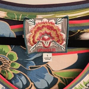 Vibrant floral short sleeve tee with a stylish V-neck. Perfect for adding a pop of color to your wardrobe.