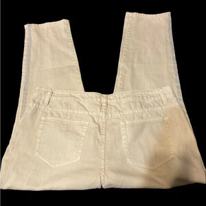 Boston Proper jeans with silver sequins down both legs. There are a few sequins missing, however, you cannot notice them because they are so tiny. Size 18, waist size is 38 inches, inseam is 27 inches. Measurements are approximate.
