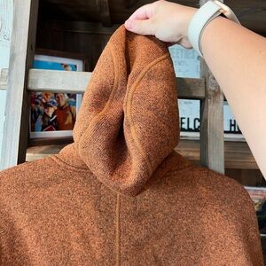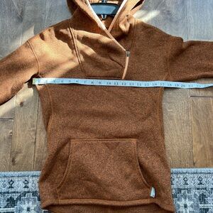 EUC Stio women’s sweet water fleece hoodie jacket size XS. This jacket is perfect for layering! Nice thick fleece, wrap around zip neck and deep hood! Front open kangaroo pocket and thumb holes at wrists! Check photos for measurements in inches!