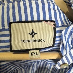 Stylish blue and white striped blouse. Features button details and long sleeves.
