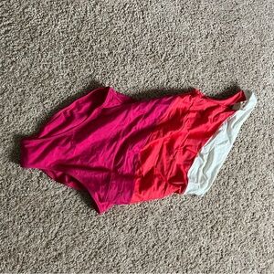 Stylish one-piece swimsuit in vibrant pink and red with a white accent. Perfect for a bold beach look. Only worn once