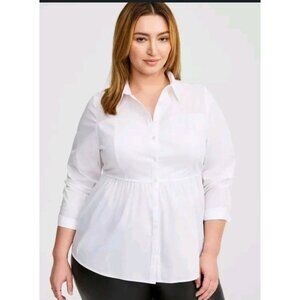 Torrid Womens Poplin Corset Detail Smocked Back Button Up Shirt Babydoll Sz 3X