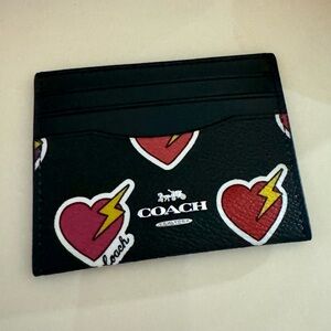 Coach Black Card Holder with Heart Lightning