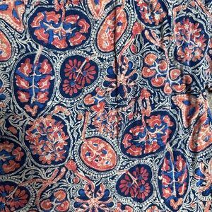 This Lucky Brand blouse features a vibrant paisley print in shades of blue and orange, offering a relaxed fit with 3/4 sleeve length sleeves and a rounded neckline with a tie. The soft, flowing fabric and curved hemline make it a perfect choice for casual outings. 60% cotton 40% modal. Make me an offer I can’t resist!! ☺️