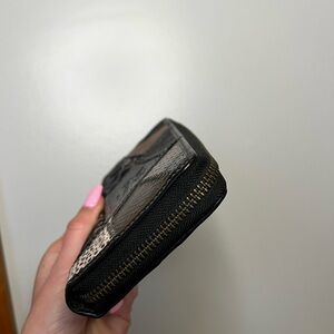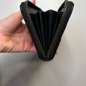 Zip around wallet, three slots for cash, 12 card slots and zipper coin pouch. Barley used. Great condition.