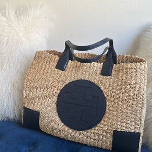 Tory Burch Tan and Black Woven Tote Bag