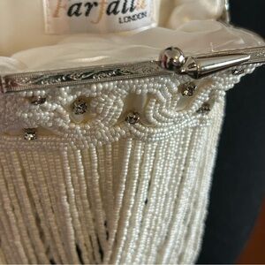 This elegant white beaded evening bag is perfect for special occasions. Its intricate design adds a touch of sophistication to any outfit.