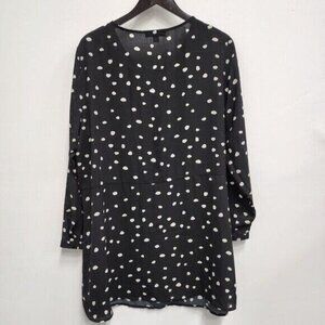 ELLOS Womens Tunic Top Size 18 Black White Polka Dot Keyhole Neck Long Sleeve