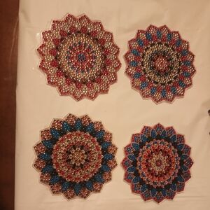 Elegant compact mirror adorned with blue and gold jewels. Perfect for adding a touch of glamour to your daily routine.