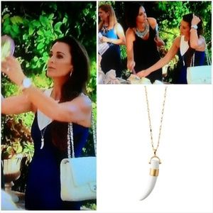 Gorgeously, exotic addition to any jewelry wardrobe! A semi-precious magnesite stone drops from a glimmering gilded intricate gold chain. Easy to instantly dress up a T- shirt for a chic everyday look or layer with other delicate necklaces to make more of a statement. I have sooo many other pieces this would layer stunningly with in my closet. Bundle and save with big discounts + save on shipping! :D