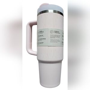 Stanley Quencher H2.0 Tumbler in pink/white, 30oz. Features a sturdy handle and straw. Perfect for all-day hydration. NEW WITH TAGS/BOX!