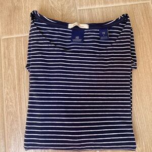 Stylish navy and white striped long sleeve shirt. Perfect for casual wear.