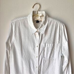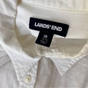 Lands’ End White Cotton Long Sleeve Button Front Shirt Size M 10-12