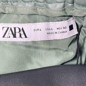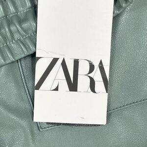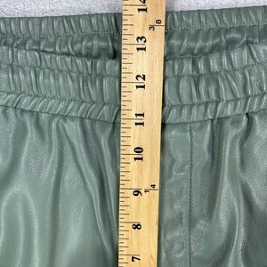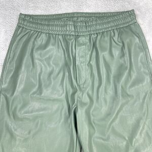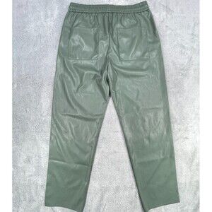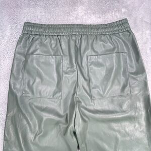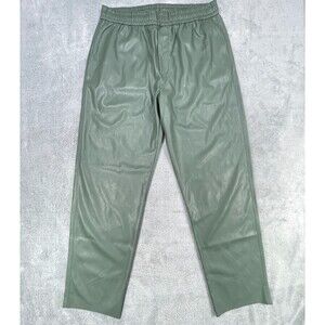 Zara Pants Womens Large Green Faux Leather Elastic Waist Straight Leg