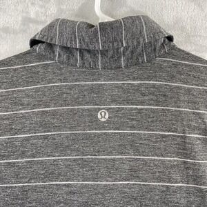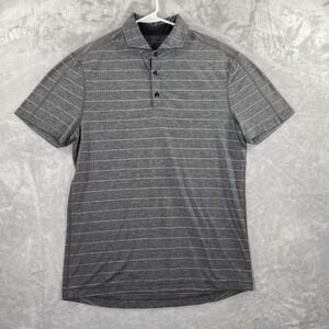 Lululemon Shirt men's Medium Polo Gray Striped Short Sleeve Casual Stretchy Logo