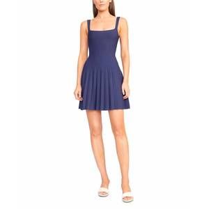 Introducing the Ellison Mini Dress by STAUD, a chic addition to your summer wardrobe in a timeless navy hue. This sleeveless mini dress, featuring a square neckline and ottoman stitch detailing at the waist, is designed for a flattering fit. It is crafted from a viscose blend, ensuring comfort with 59% Viscose, 40% Nylon, and 1% Spandex, and measures 35 inches in length. Made with a pull-on closure, it requires dry cleaning to maintain its elegant appearance, perfect for holiday parties.