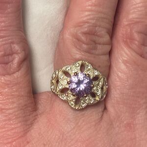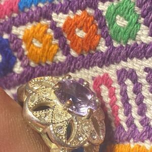 Gorgeous Purple & White Stone Sterling Silver Ring size 6