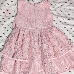 This formal sundress in a soft pink hue features a sleeveless design and a scoop neckline, perfect for elegant occasions. The fitted bodice and flared skirt create a flattering A-line silhouette, while a charming bow at the waist adds a playful touch. Intricate lace detailing enhances its romantic appeal, making it a standout choice for any special event.