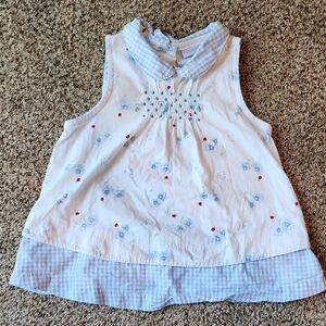 EUC, This charming vintage sleeveless top features a delightful blue and white design with adorable flowers and ladybugs. Perfect for any occasion. The soft fabric ensures comfort for your little one. Sweet buttons on back and collar.